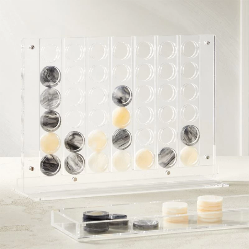An elevated take on a classic game. Clear acrylic and beautiful marbleized resin pieces combine for a display-worthy look. Clear acrylic stopper keeps pieces in play and removes easily to clear the board at the end of the round. CB2 exclusive.