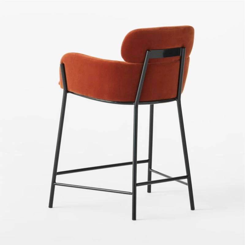 Designed by Caleb Zipperer and curved with two tiers of comfort. Soft brown upholstered counter stool invites guests to stay a while. Sits plush, with bottom tier sized right for arm resting. CB2 exclusive.