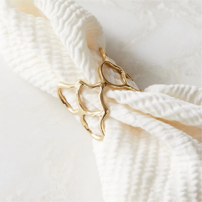 Inspired by a cuff bracelet, solid polished brass napkin ring makes an edgy statement with its scale-like design. CB2 exclusive.