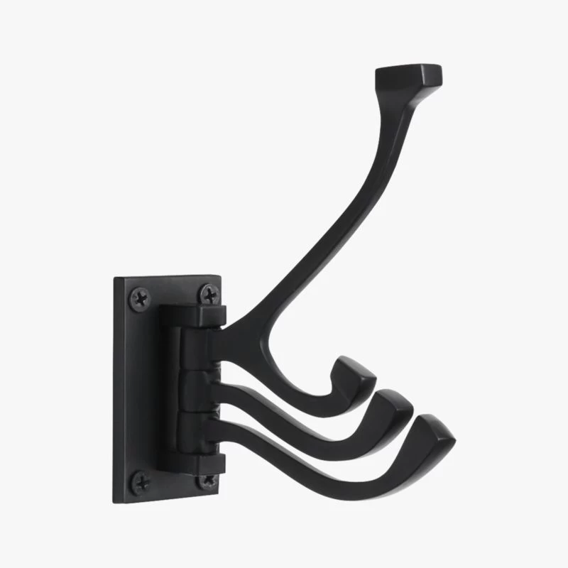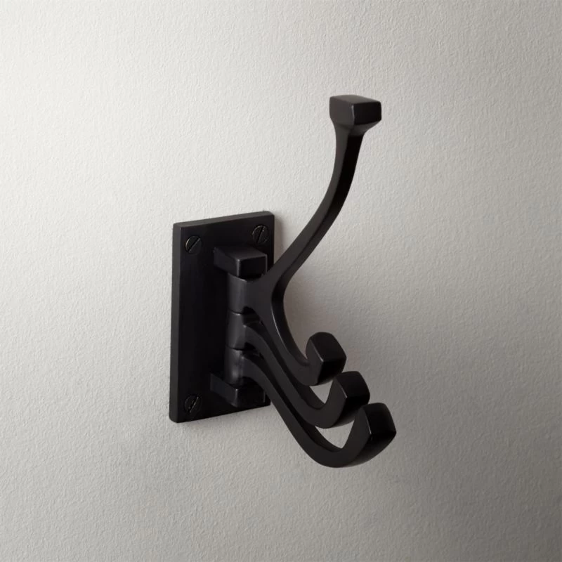 Handmade from brass with matte black finish, towel hook boasts three swivel arms that hang every which way. Also works wonders hanging coats, scarves, hats and bags. CB2 exclusive.
