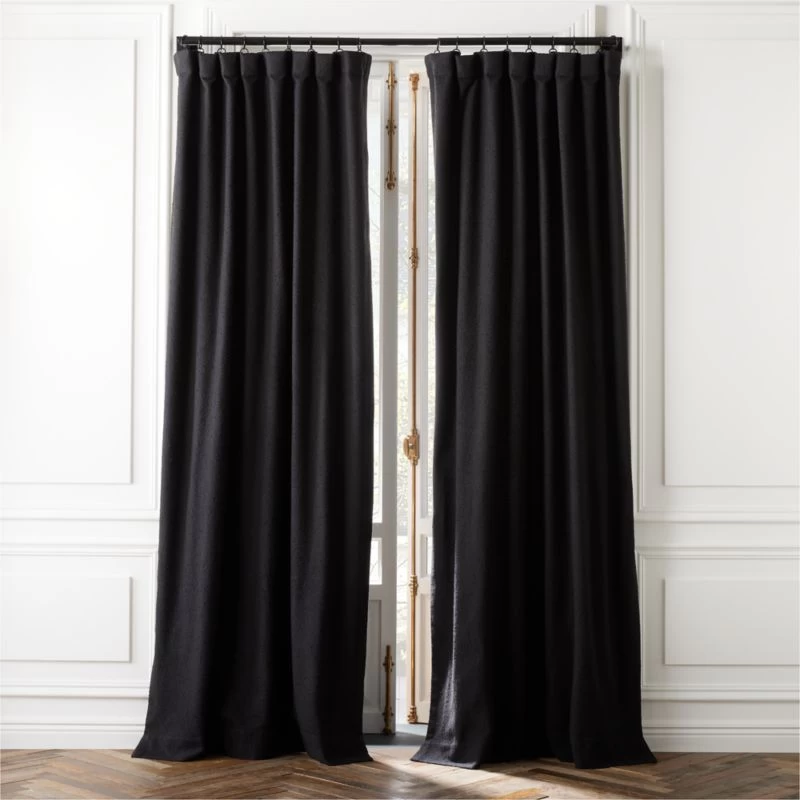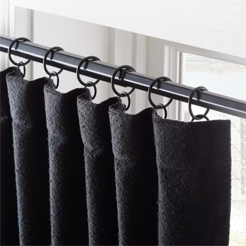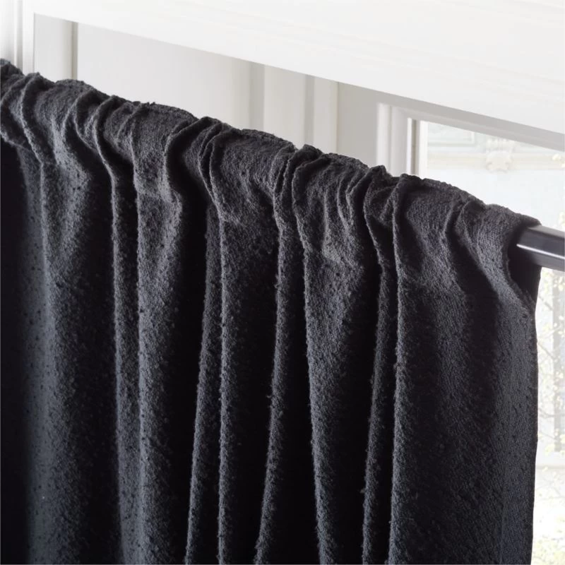 Woven of cotton and linen, boucle drapery offers a soft, textural hand in black. CB2 exclusive.
