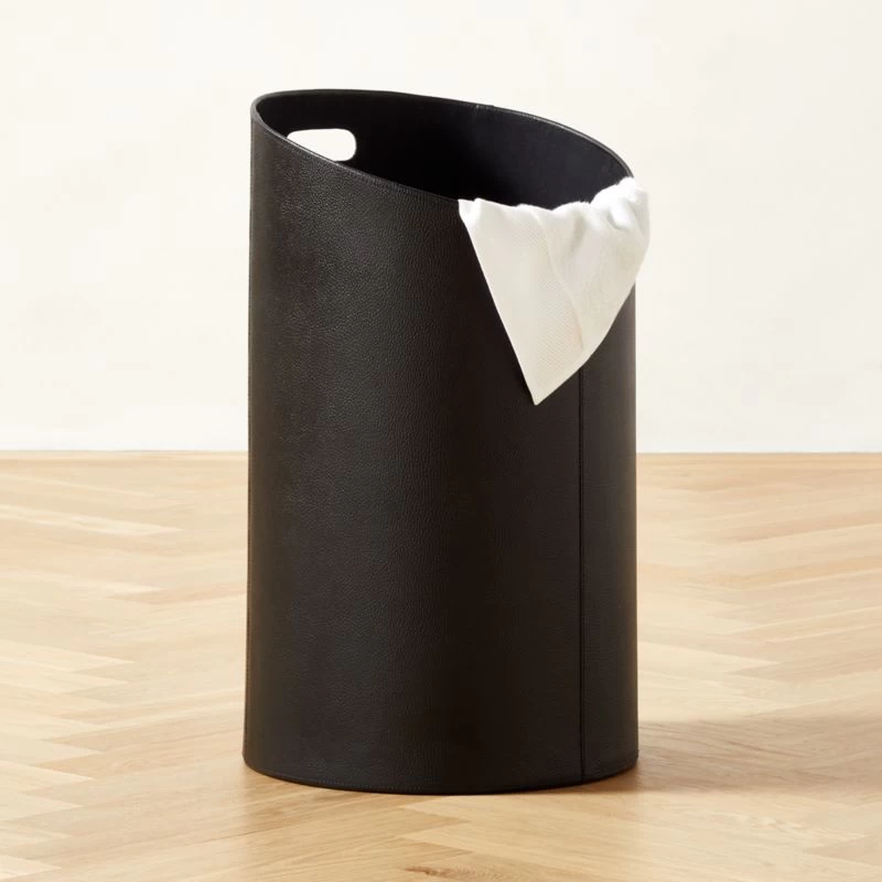 Black Leather Laundry Hamper 14.56″Wx14.56″Dx25.76″H