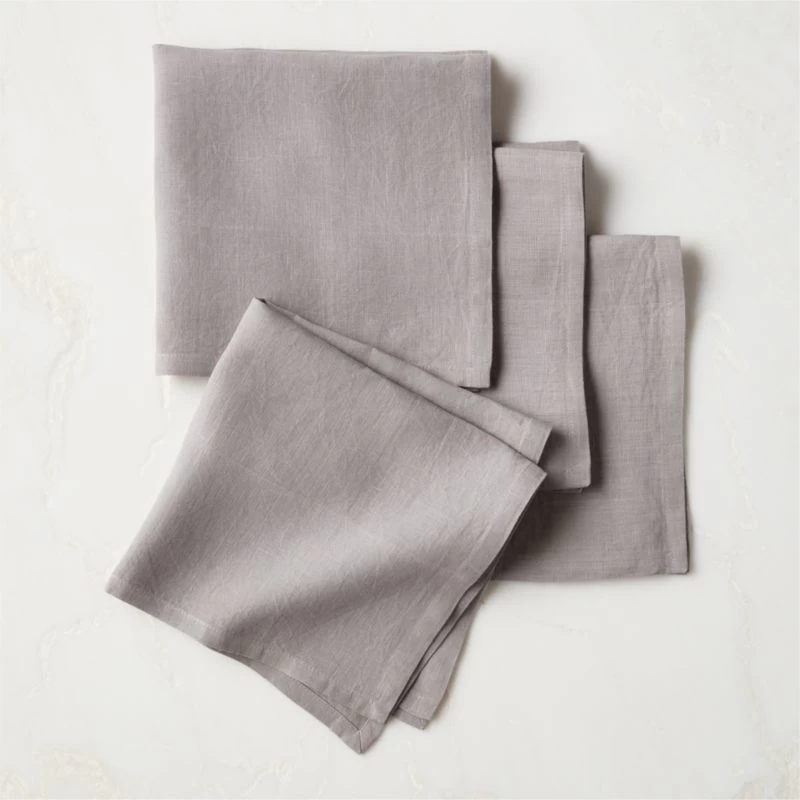 100% natural linen minds your manners in modern grey with a finely finished stitched edge. bolt grey linen napkins set of four is a CB2 exclusive.