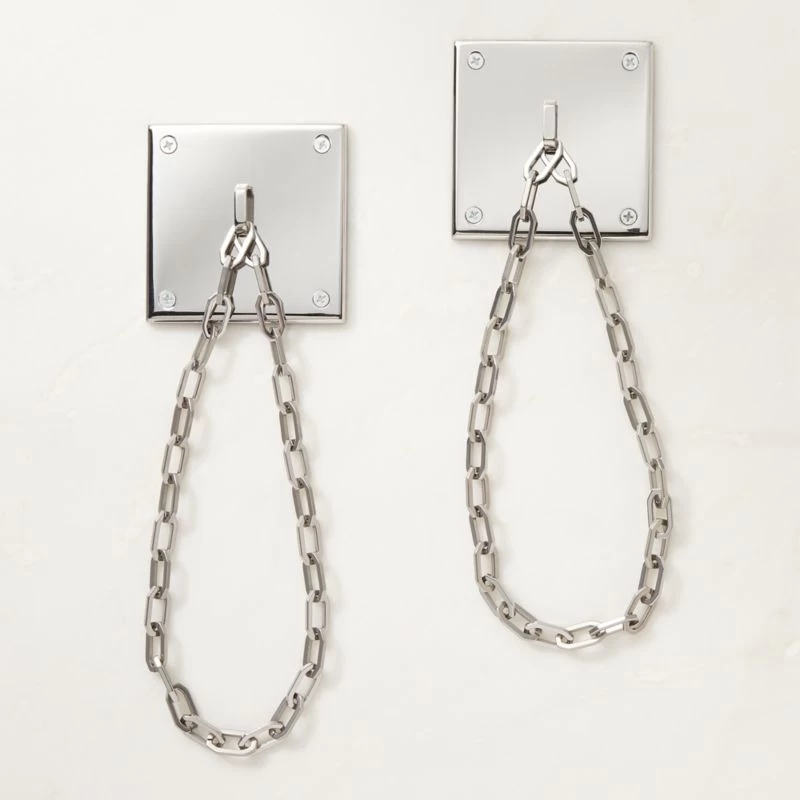 Tieback chains in polished nickel hang like jewelry for your drapery. An edgy complement to the Bolt curtain collection by Chicago-based designer Sasha Adler. CB2 exclusive.