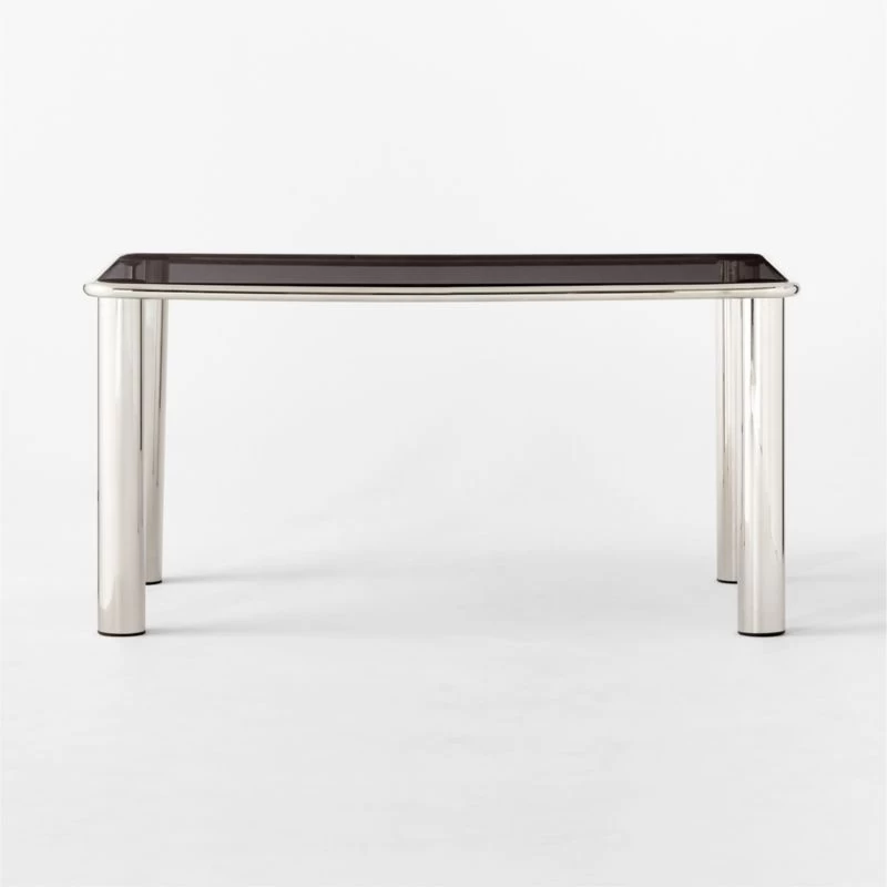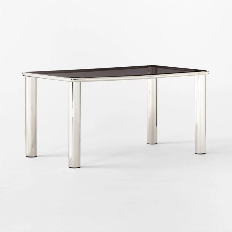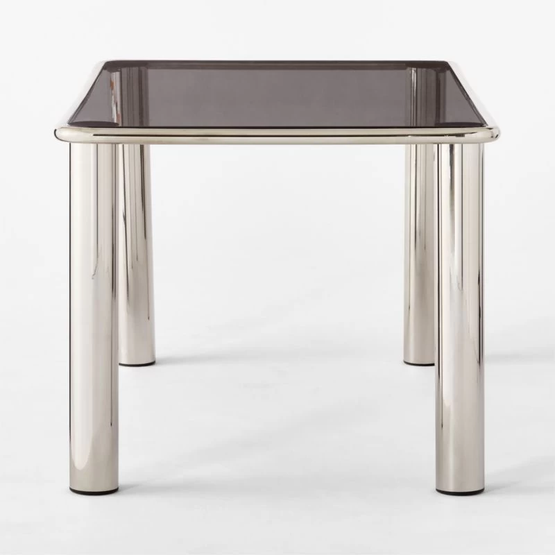 Created by groundbreaking Italian designer Gianfranco Frattini, this rectangular dining table exemplifies the decade-defining aesthetic he introduced in the 1970s. Designed at the same time as his famous Sesann sofa, this polished stainless steel dining table features a warm grey smoked glass top that plays up the sheen of its tubular legs. Newly reintroduced in collaboration with CB2, the small-scale table is perfect for apartments, and it’s made in Italy—just like the original. CB2 exclusive.