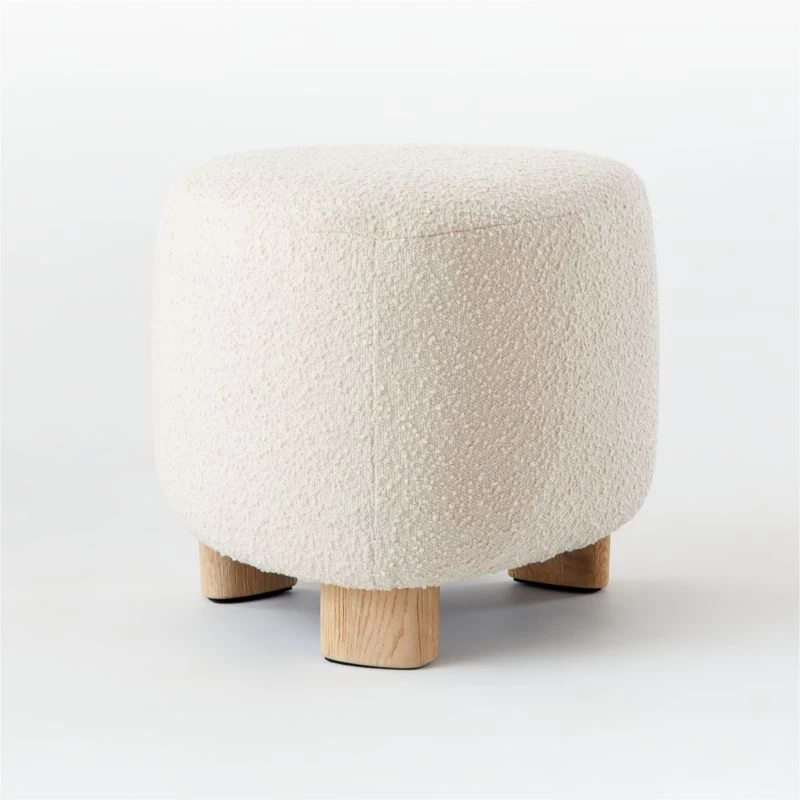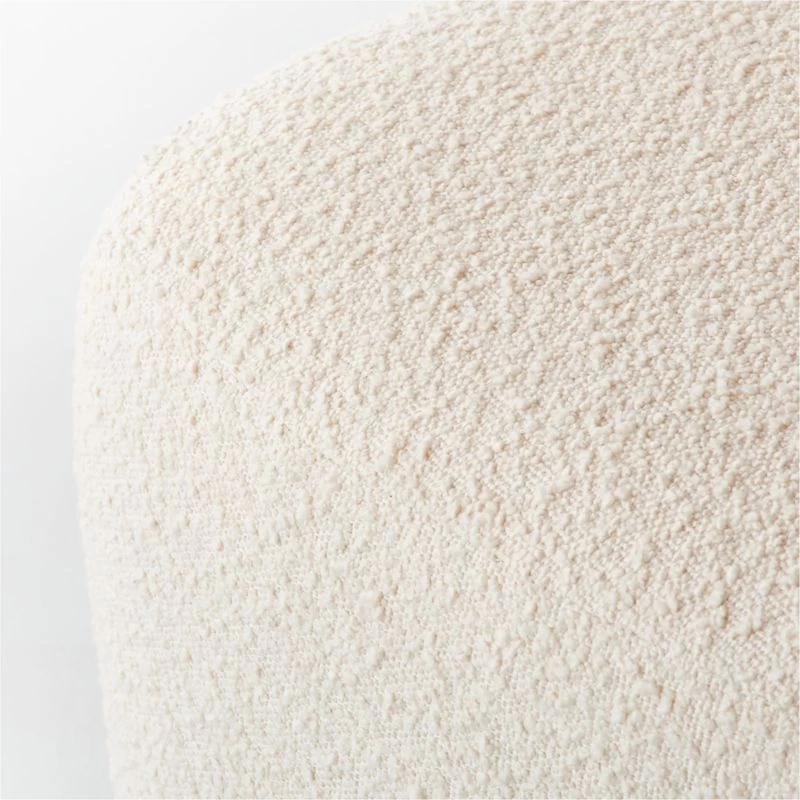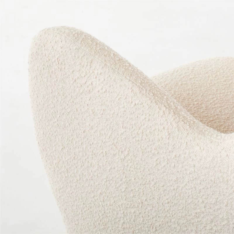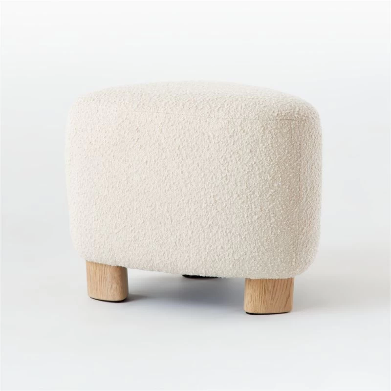 A modern take on a classic wing chair. Designer Ross Cassidy brings his signature flair to a popular silhouette by wrapping it entirely in luxe ivory boucle. Bleached oak feet are asymmetrical and wire-brushed for a special design detail, with matching asymmetrical ottoman. Framed out in FSC ®-certified wood. CB2 exclusive.