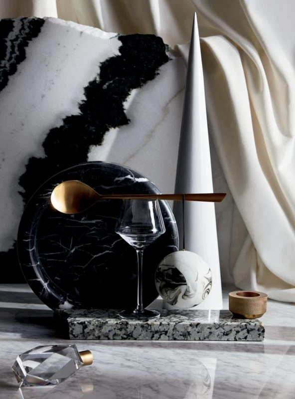 Stainless steel utensils with brushed gold finish—skimmer, spoon and turner. Thin, round handles flatten to angled ends for easy resting and storing. CB2 exclusive.
