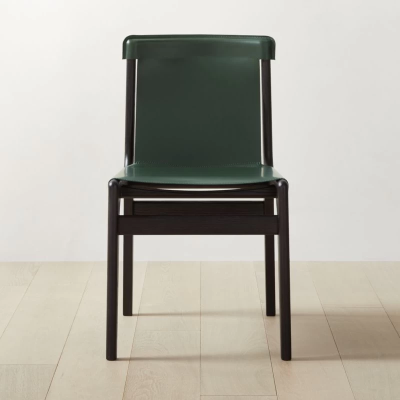 Made in Italy by father–daughter design duo Balutto Associati, green leather chair invites guests to sit back and relax. 100% mid-grain green Italian leather stretches taut across an ash wood frame that has been certified sustainable by the Forest Stewardship Council ®. CB2 exclusive.