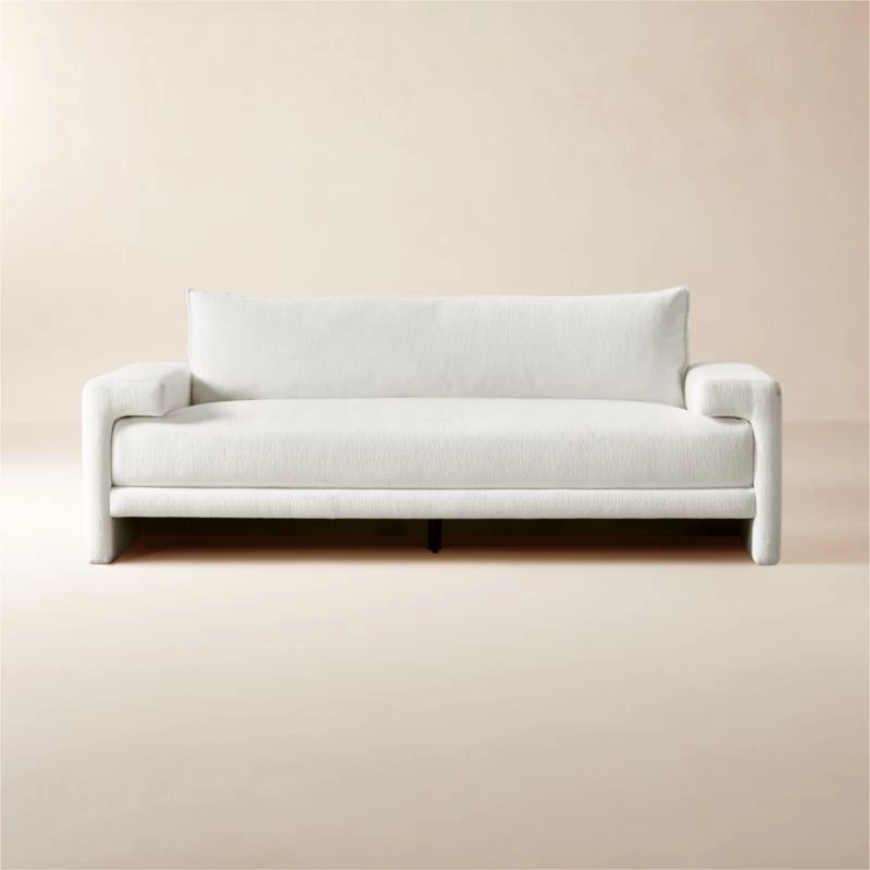 Mermelada Estudio puts a slightly ’70s spin on this vintage-inspired apartment sofa, upholstered in a plush performance velvet. Wraparound arms add architectural interest while the relaxed back cushion keeps it comfortable. CB2 exclusive.