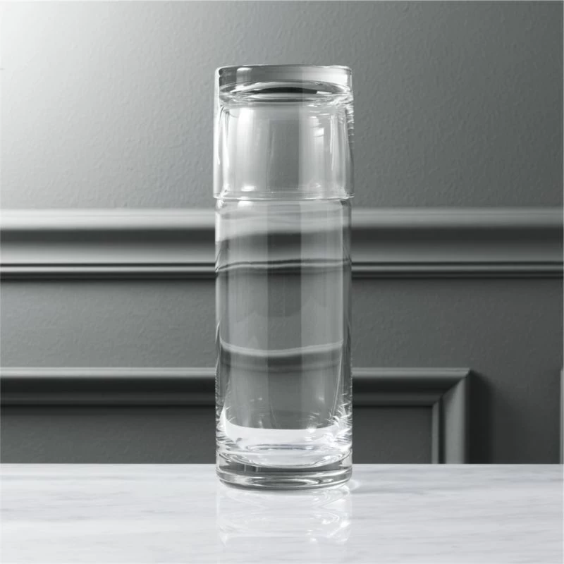 Two-piece handblown glass cylinder stacks its own cup. Makes a cool wine carafe, too.