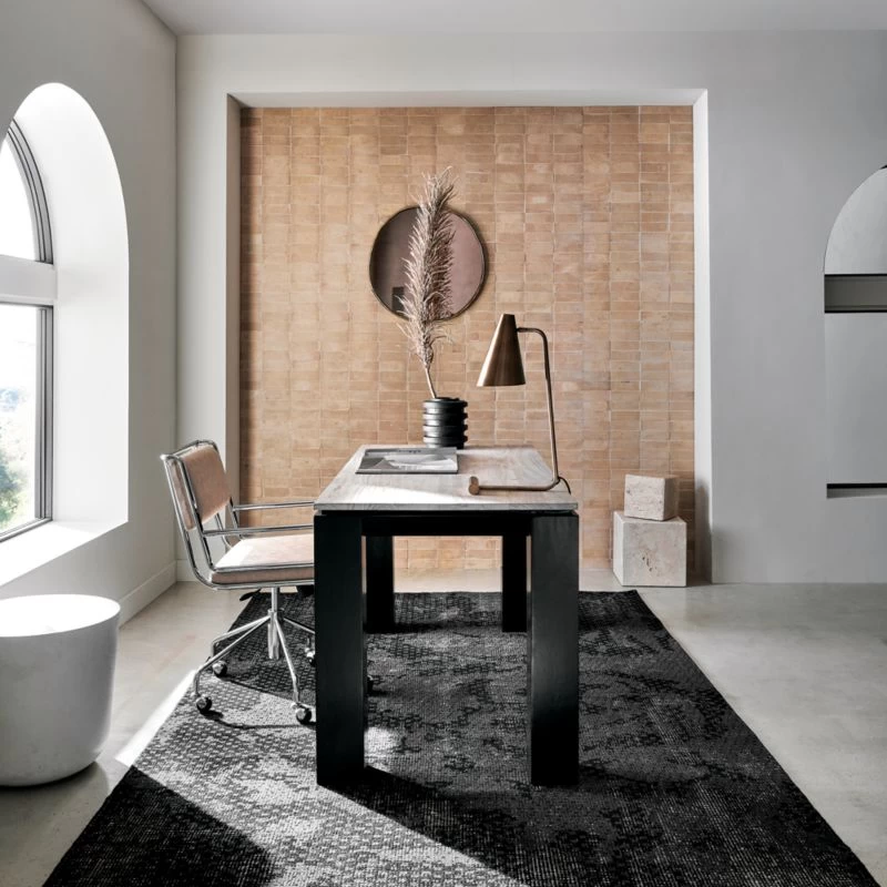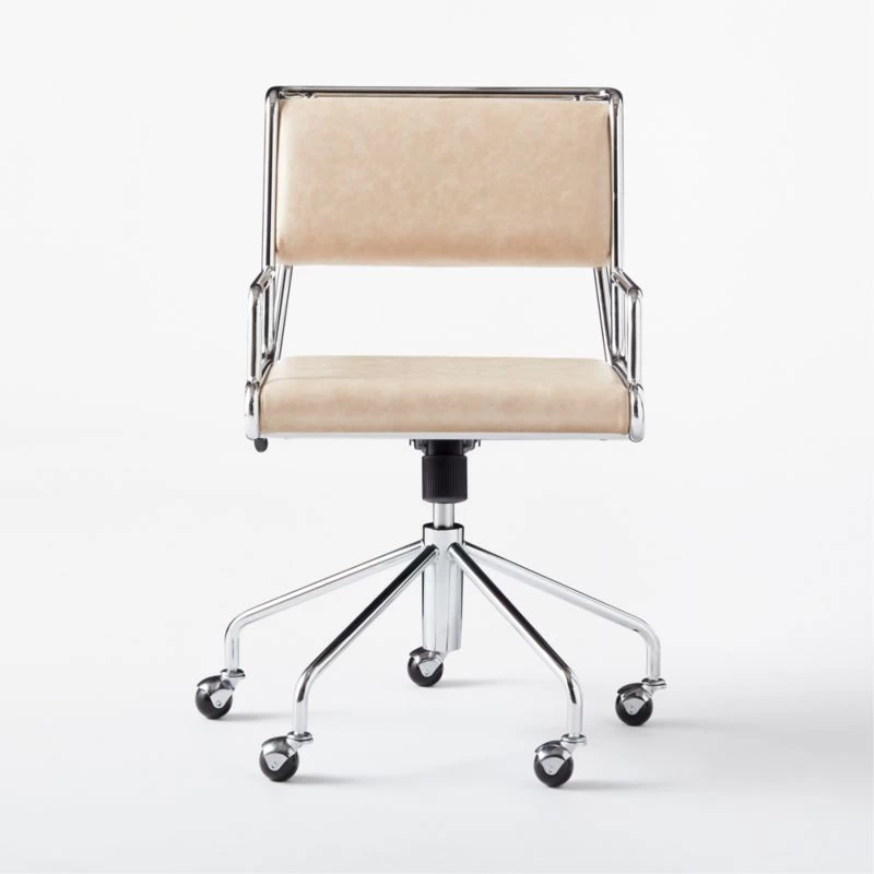 Designed by Barcelona-based Mermelada Estudio, this vintage-inspired office chair has a distinctly French industrial vibe. Polished nickel frame shows off soft vegan leather in a warm nude tone. Height is adjustable. A swivel base and rolling casters round out the details. Learn about Mermelada Estudio on our blog. CB2 exclusive.