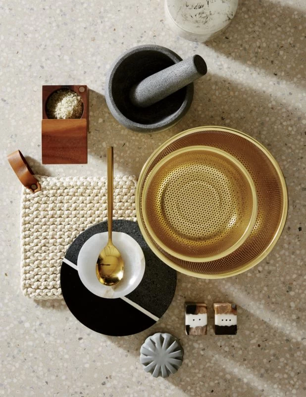 Hand-crocheted square with leather hanging loop serves as both a pot holder and a trivet. Perfect for pulling pans from the oven and protecting the table from hot pots. Size and shape will be unique to each. CB2 exclusive.
