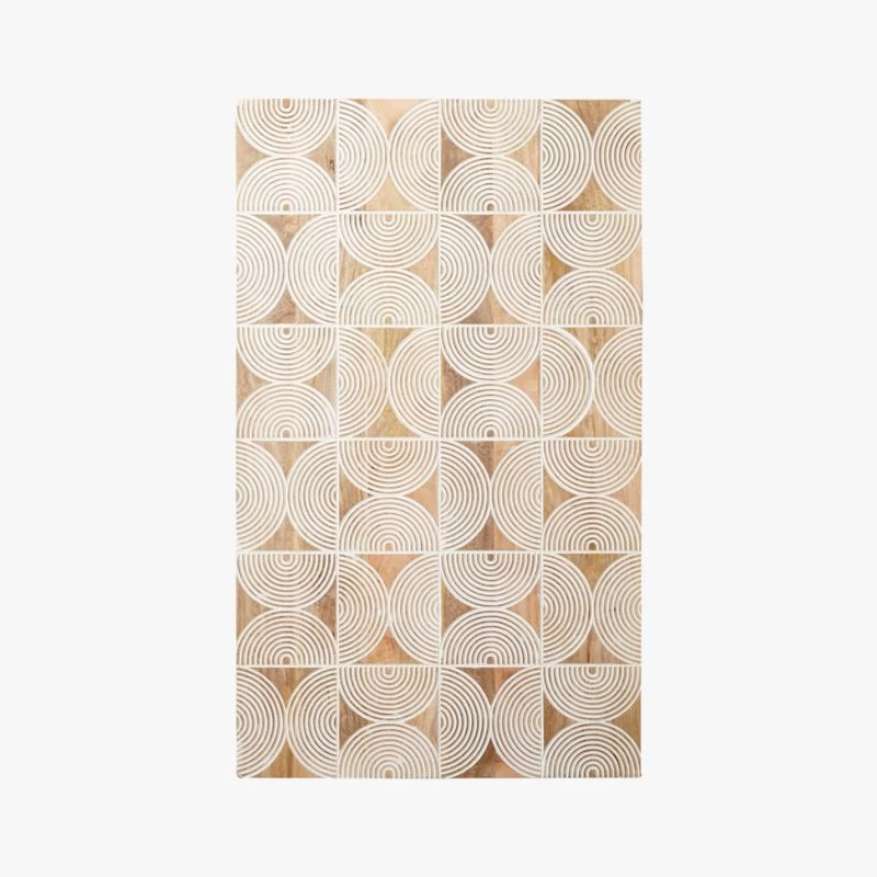 Spin your head right ’round this unique wall art by Molly Fitzpatrick. Whitewashed half-circles connect and repeat across carved mango wood, creating a calming effect in neutral tones. Every piece is handmade and may be hung vertically or horizontally for maximum versatility. Learn about Molly Fitzpatrick on our blog. CB2 exclusive.