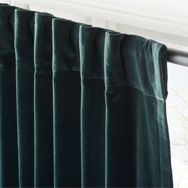 Dark Green Organic Cotton Velvet Window Curtain Panel 48″x84”