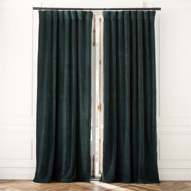 Rich in color with a subtle luster, organic cotton velvet drapery frames windows in lush warmth. The heavyweight panel darkens the room while offering a soft, smooth hand and vibrant color. CB2 exclusive.