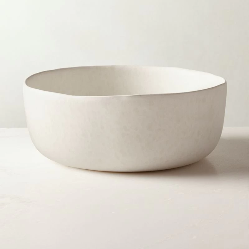 Expert craftsmanship leaves its mark on the Drift Serving Bowl. Hand-pressed with a curved bottom and straight edges, wide stoneware form is coated with a matte ivory water-reactive glaze that behaves beautifully when kiln-fired. What surfaces is a subtle crackled texture in a rich tonal mix that makes each piece unique. Part of the Drift Reactive Ivory Dinnerware collection; also looks great with Drift Dinnerware in both lavender and green. CB2 exclusive.