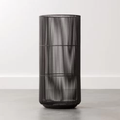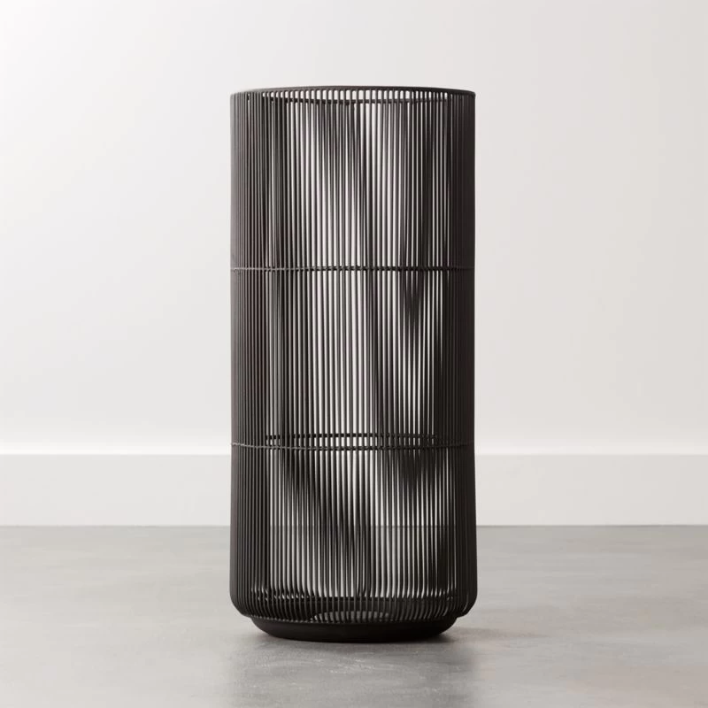 Black iron umbrella stand serves as handsome home for umbrellas between uses. Minimalist silhouette looks neat in any entryway. CB2 exclusive.