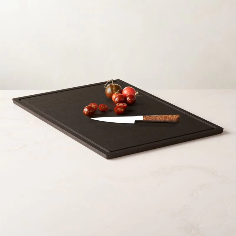 Epicurean’s signature cutting boards have earned their place in the heart of the kitchen, meeting the highest standards of cooks and chefs worldwide. With a natural look and texture from an eco-friendly paper composite, this black block is durable, nonporous, knife-friendly and dishwasher-safe. Will look fabulous kept out on the counter. CB2 exclusive.