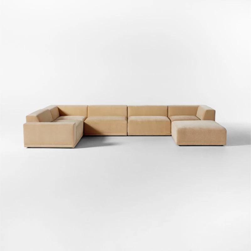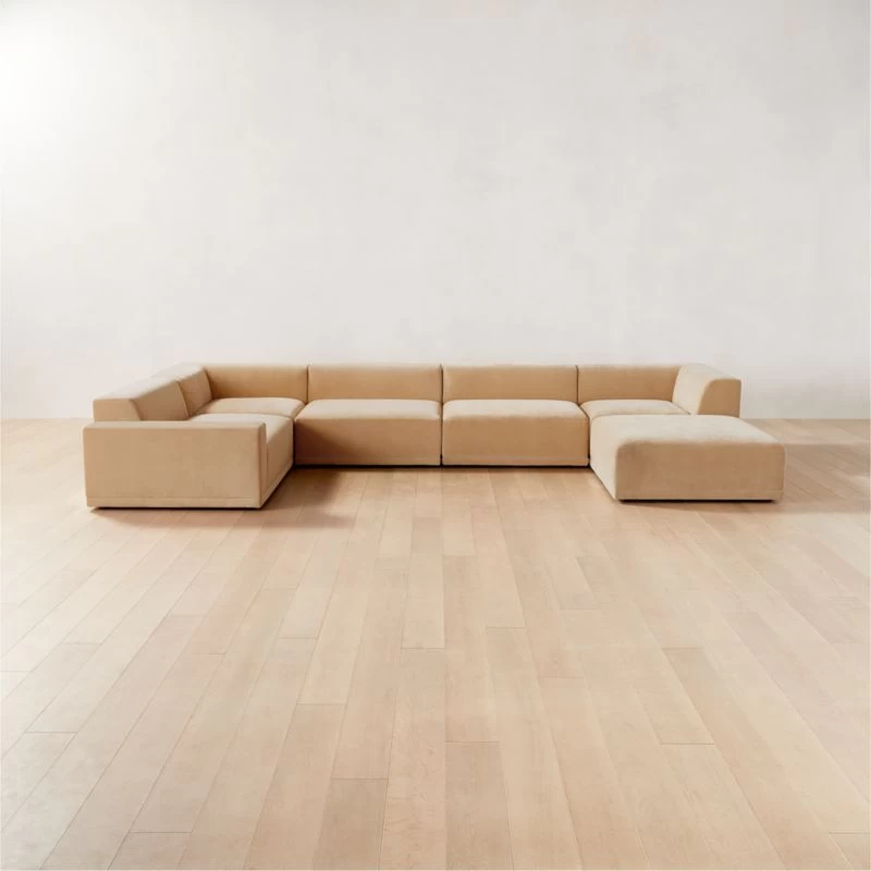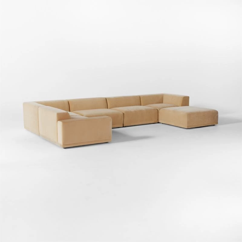 Faible 6-Piece U-Shaped Wheat Performance Velvet Sectional Sofa with Left Arm 184″Wx46″Dx29″H