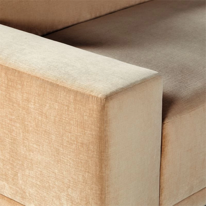 Deep, generously proportioned sectional sofa designed by VUUE is sophisticated in a wheat performance velvet. The oversized profile is perfect for lounging with family and friends without sacrificing style. Performance fabric withstands spills and other stressors, yet retains the lushness of a high-end textile. Customize the sectional layout to suit your individual space. CB2 exclusive.
