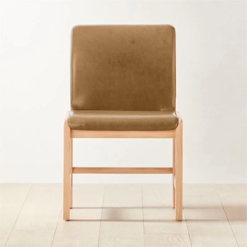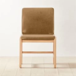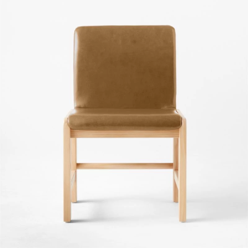 Inspired by 1970s American design, Lawson-Fenning-designed dining chair has an easygoing sensibility. Matte brown leather brings textural appeal and comfort to armless solid FSC ®-certified pine frame, inviting guests to linger over dinner, drinks and dessert. CB2 exclusive.