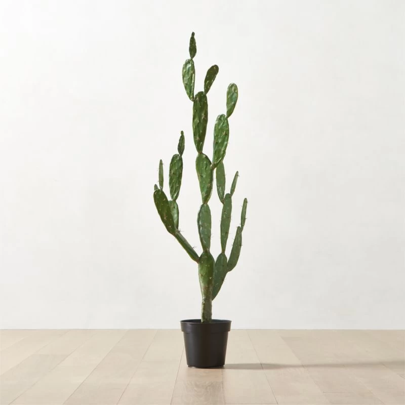 Requiring zero care, forever-green cactus adds a bit of depth and a southwestern touch to low-light spaces. Potted in a black plastic container, faux cactus is ready to drop into a planter of your choice. CB2 exclusive.