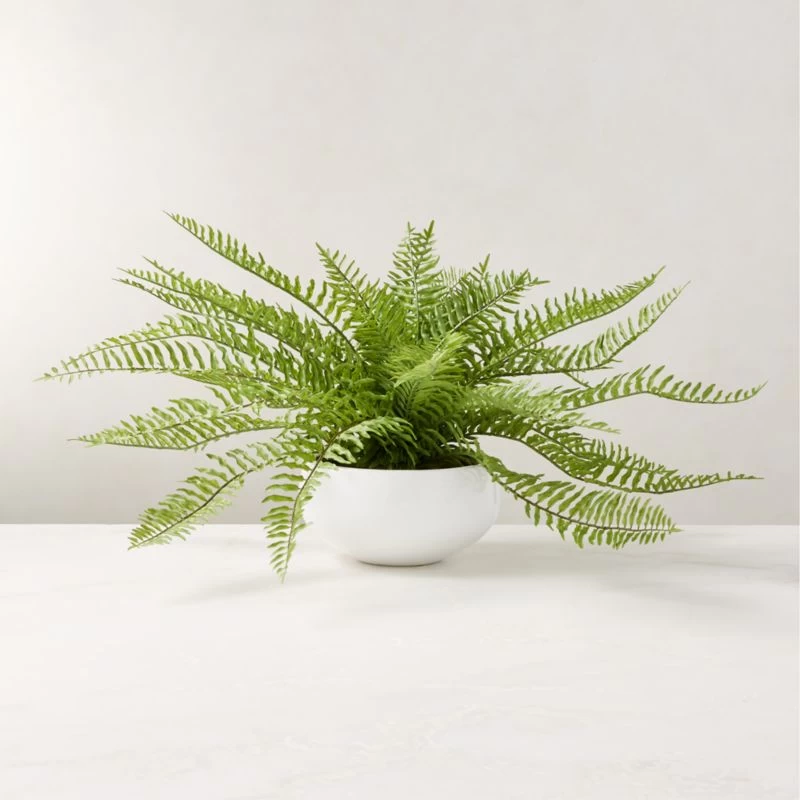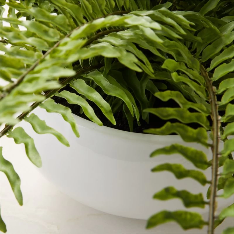 Vibrant, wispy, full … and no maintenance. Spilling out from a shiny white ceramic pot, Faux Fern is greenery made easy. CB2 exclusive.