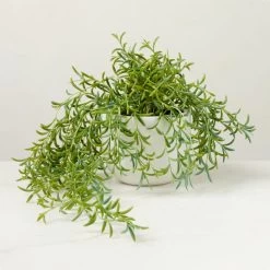 Leafy, succulent, vibrant … and no maintenance. Spilling out from the shiny white ceramic pot, this faux String of Bananas trailing plant is greenery made easy. CB2 exclusive.