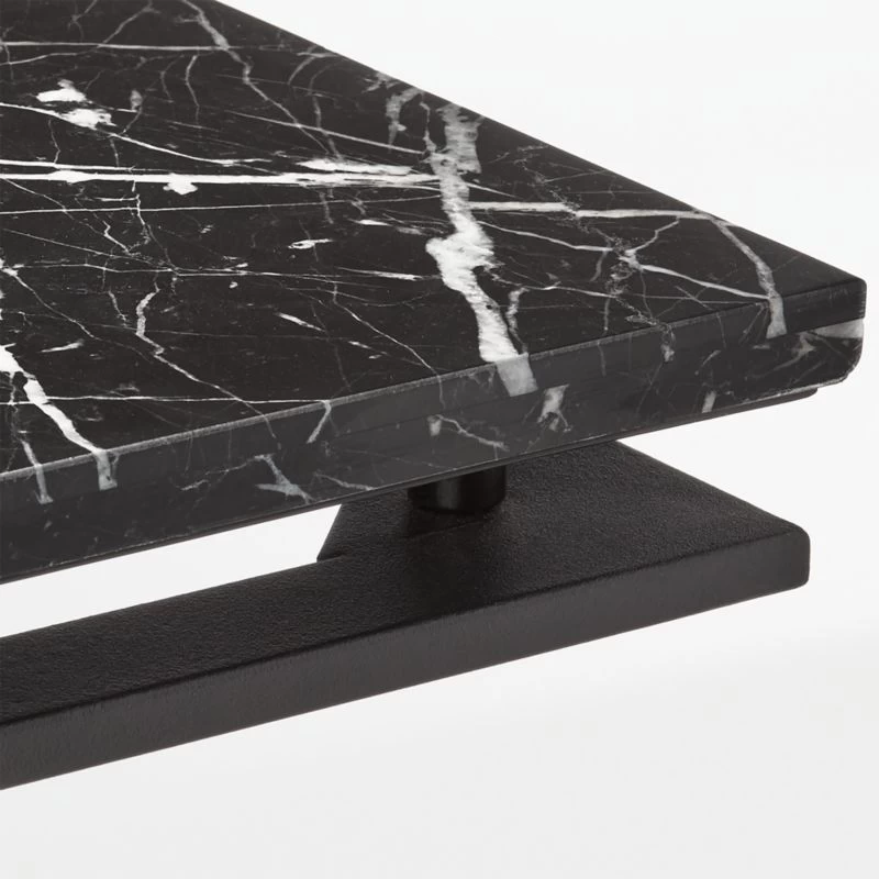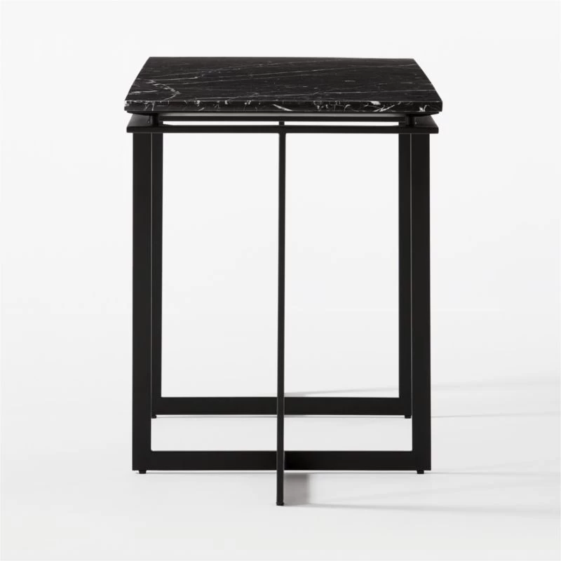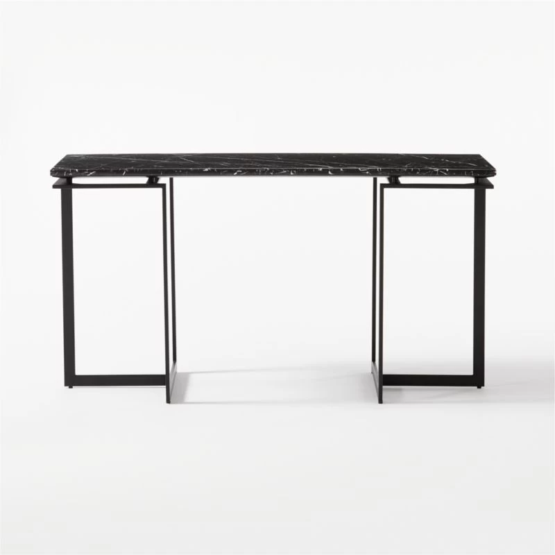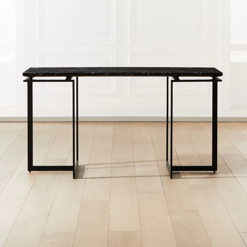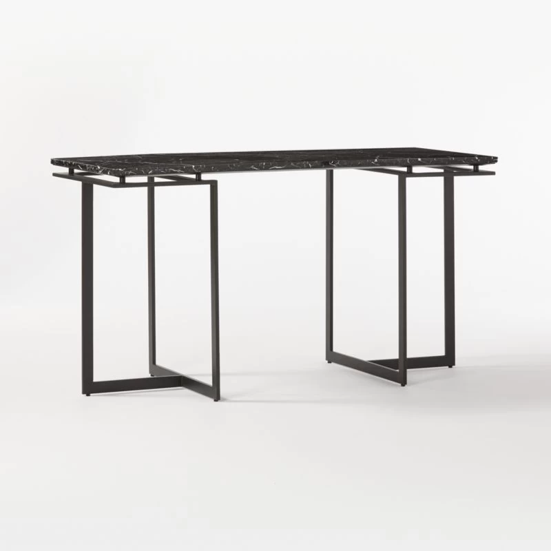 Modern metal desk works hard to look sleek round the clock. Minimalist black metal frame creates an airy base for black marble top. Learn about VUUE on our blog. CB2 exclusive.