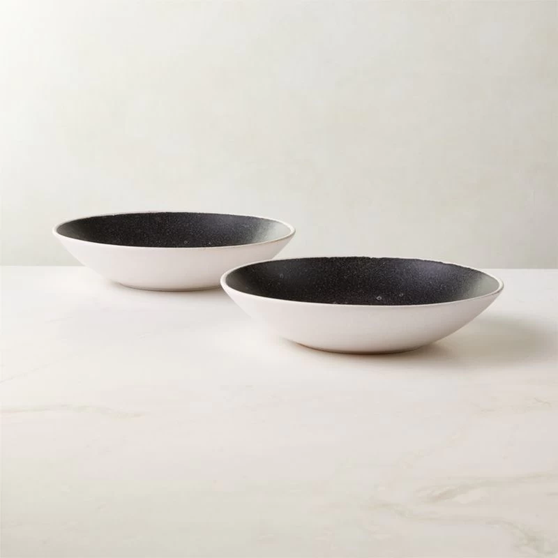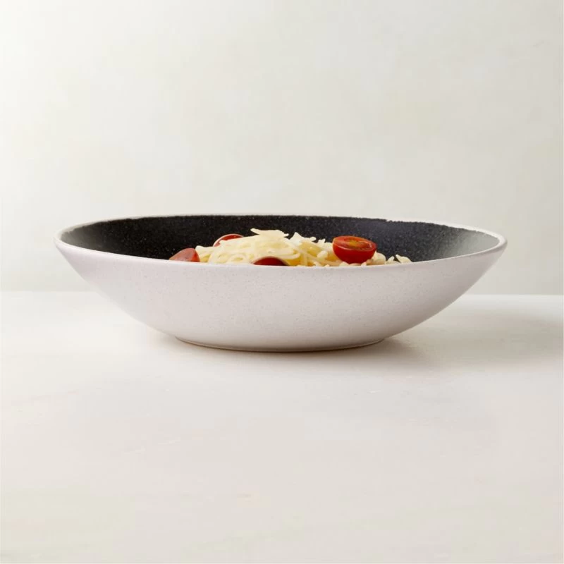 Fynn Black and White Pasta Bowl with Reactive Glaze 9.06″ dia. x 1.97″H