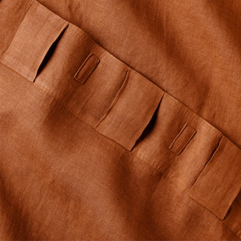 Light-filtering linen drapery is woven from natural flax grown in Europe. Full-length in glazed ginger. Hangs beautifully with back tabs, rod pocket or drapery hooks. CB2 exclusive.
