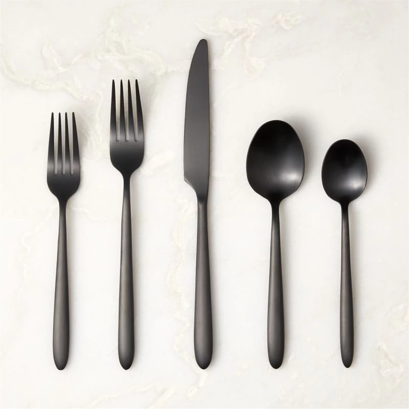 - 18/0 stainless steel forks and spoons with brushed black finish