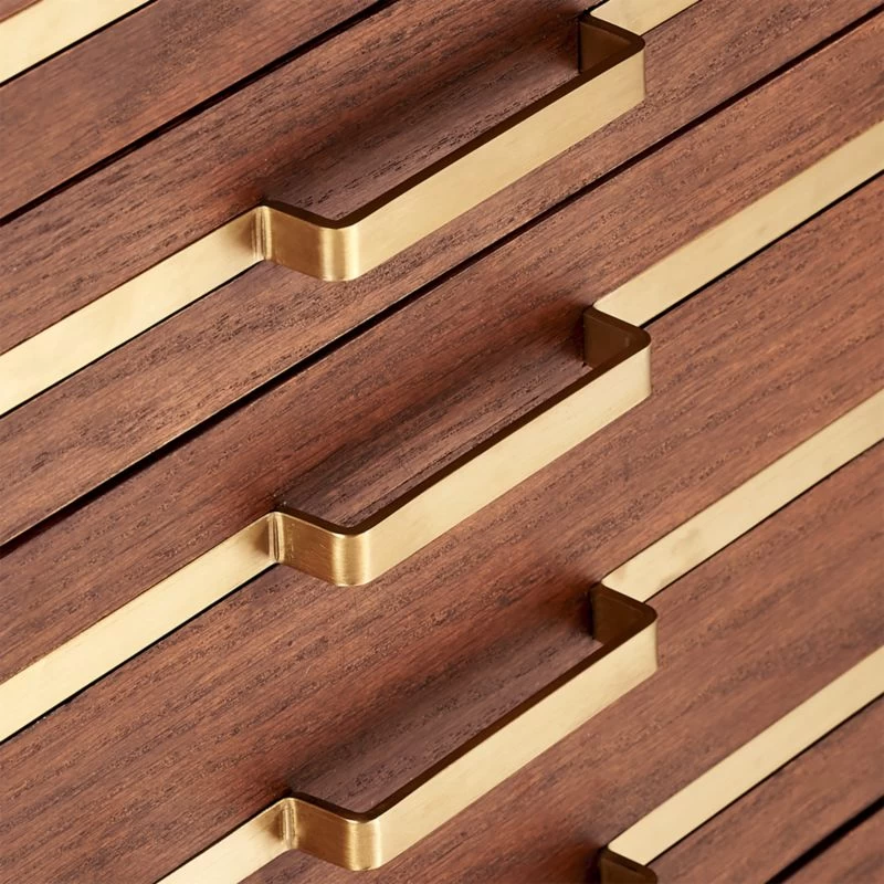 “Familiarity reigns and favorites are reimagined with a splash of LA cool and a fashion edge,” says Fred Segal of their eclectic approach to furniture design. Take this chic mixed material filing cabinet fronted with stripes of brass-finished inlay. Inspired by vintage flat-file cabinets with tons of tiny drawers, our modern version has only four: Two small, one medium and one large for hanging letter or legal files. Lots of function, all the charm.