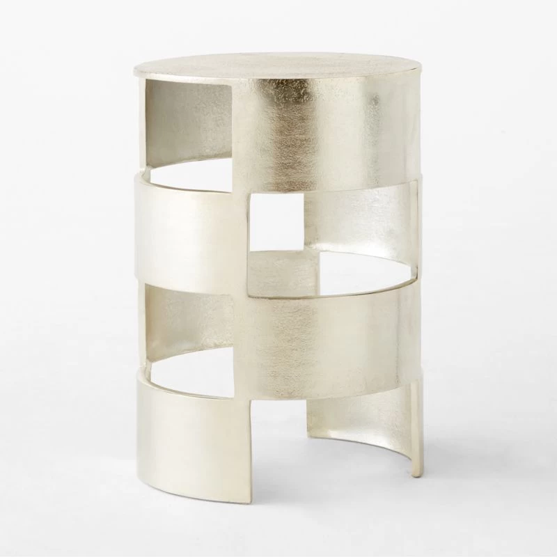 Jalousie Round Silver Cast Aluminum Side Table 14″ dia. x 20″H