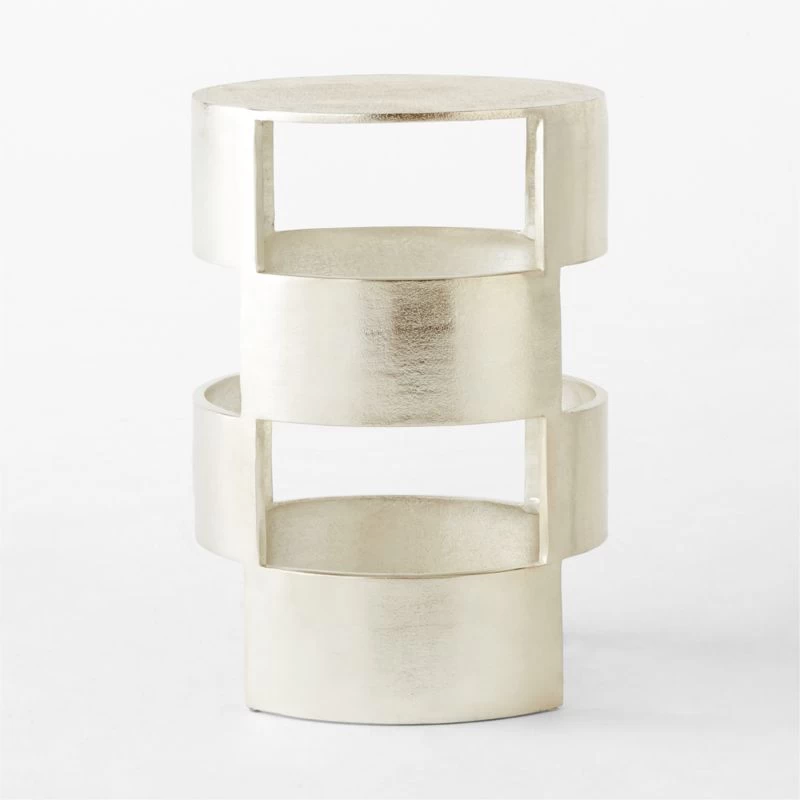 Made from cast aluminum and designed to look like a rigid, stacked checkerboard, side table by architect-designer Jerome Byron appears paper-thin and lightweight. Hand-poured, sand cast aluminum has a luxe silver finish and natural variations from the casting process that add to its unique characteristics. CB2 exclusive.