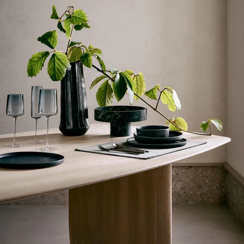 Handmade white wine glass with straight, elongated sides and soft round bowl detail offers bold sips from a fine, hand-polished rim. Set includes six midnight blue white wine glasses. CB2 exclusive.