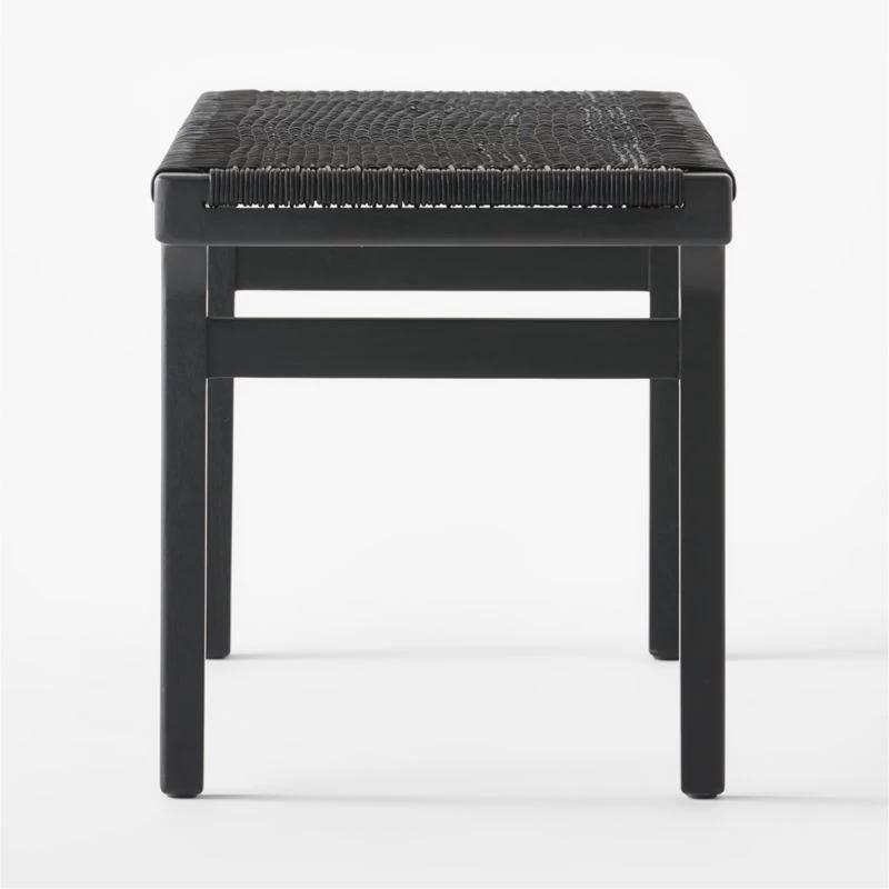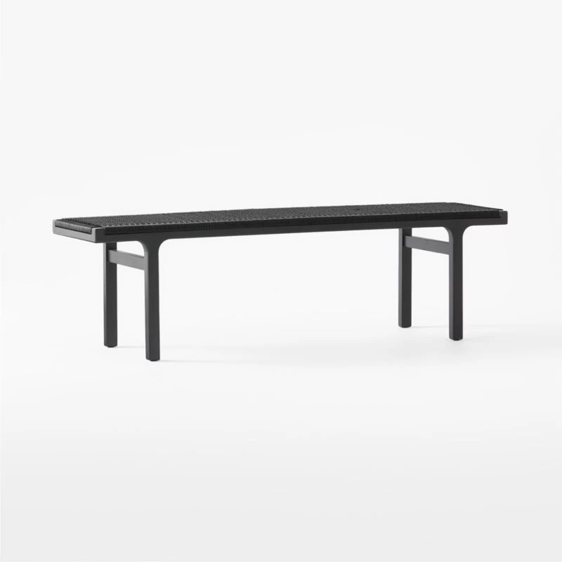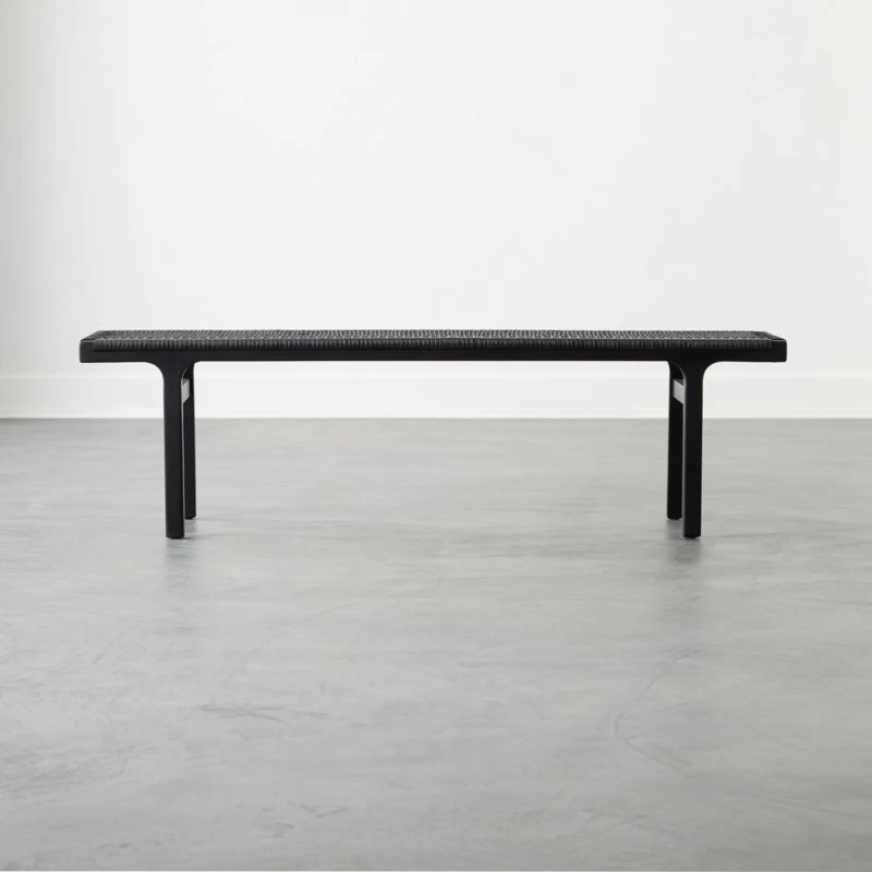 Black-on-black silhouette designed by Hettler.Tüllmann. Plantation-grown acacia wood frames the bench with deepened wood grain that shows beautifully through the black finish. Leather is double-warp woven across the frame for a taut seat with minimal give. Learn more about Hettler.Tüllmann on our blog. CB2 exclusive.