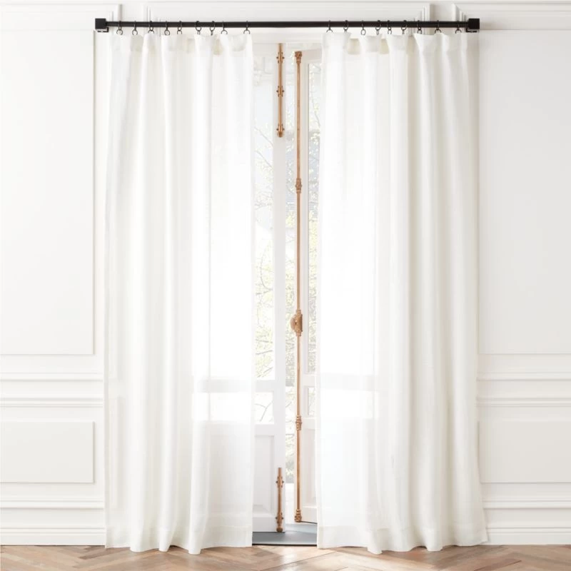 Curtain rod is handcrafted of stainless steel and features a matte black powdercoat. Designed by Barcelona-based Mermelada Estudio, cube end caps are a bold geometric alternative to more decorative finials. CB2 exclusive.