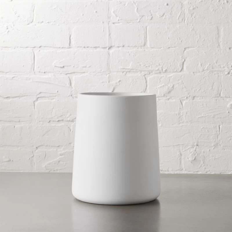Smooth stoneware cylinder in a dip of minimal matte white is generously sized to hold all your kitchen utensils. A clean, modern and elegant countertop storage solution.