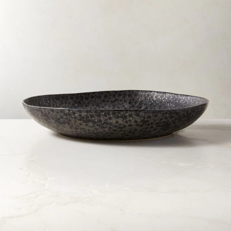 Inspired by the venerable beauty of Portuguese pottery, black stoneware serving bowl is made using traditional techniques. Each piece is formed, fired and decorated by hand with two reactive glazes. It’s then fired once more to create its unique pattern. As each piece is crafted by artisans, slight variations will occur from one bowl to the next. CB2 exclusive.
