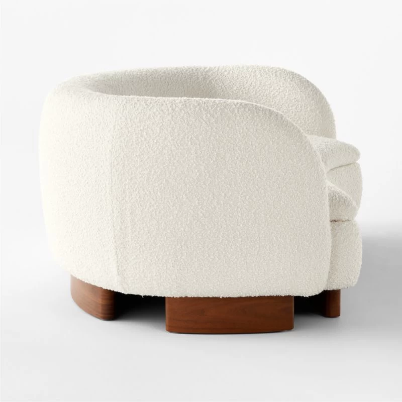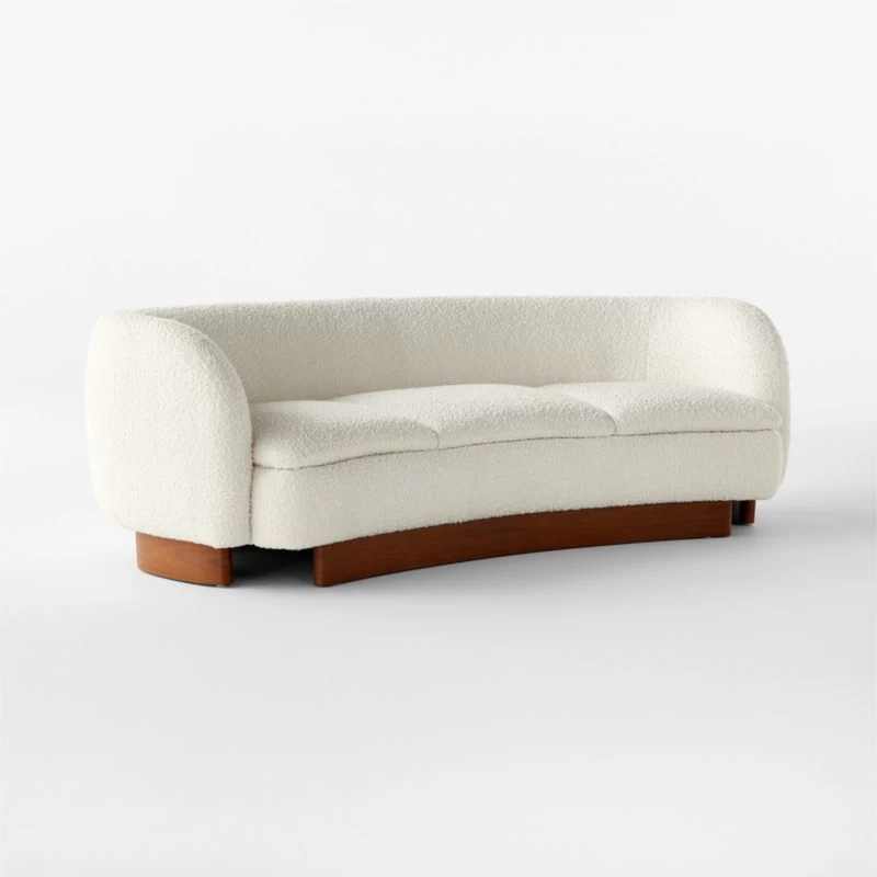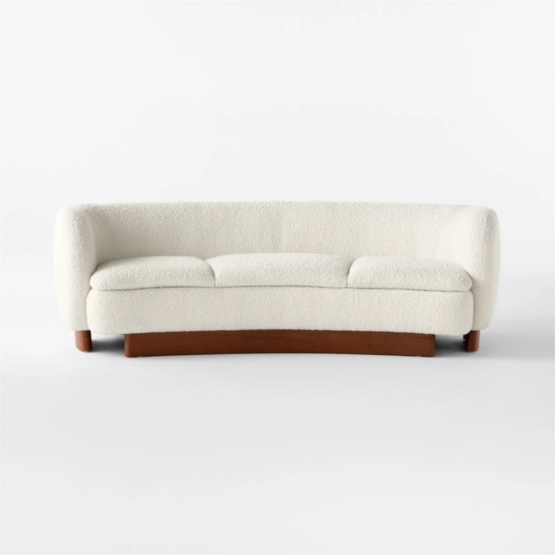 Muir Curved White Boucle Sofa 90″Wx43.5″Dx28″H