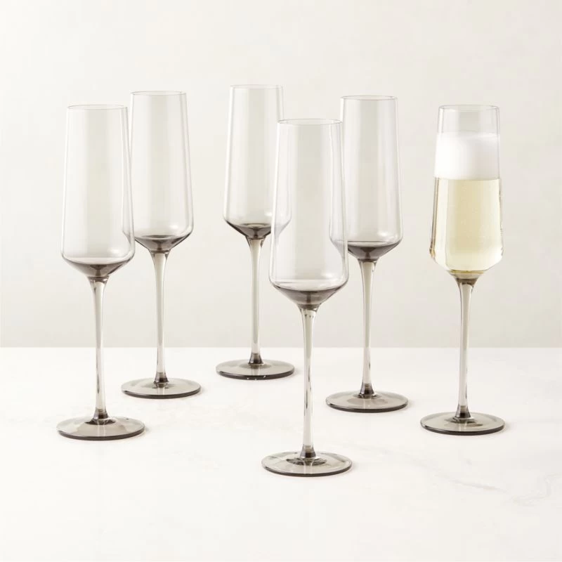 Muse Smoked Glass Champagne Flute Set of 6
