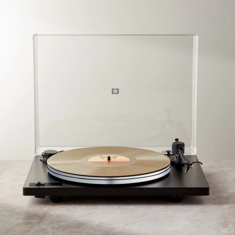 U-Turn Audio’s Orbit Plus Turntable delivers brilliant sound in a sleek black finish. The Orbit Plus features an upgraded black acrylic platter, providing improved speed stability and dissipates unwanted resonances for more lifelike tonality and punchier bass. Includes a built-in phono preamp to connect directly to speakers or an amp. CB2 exclusive.