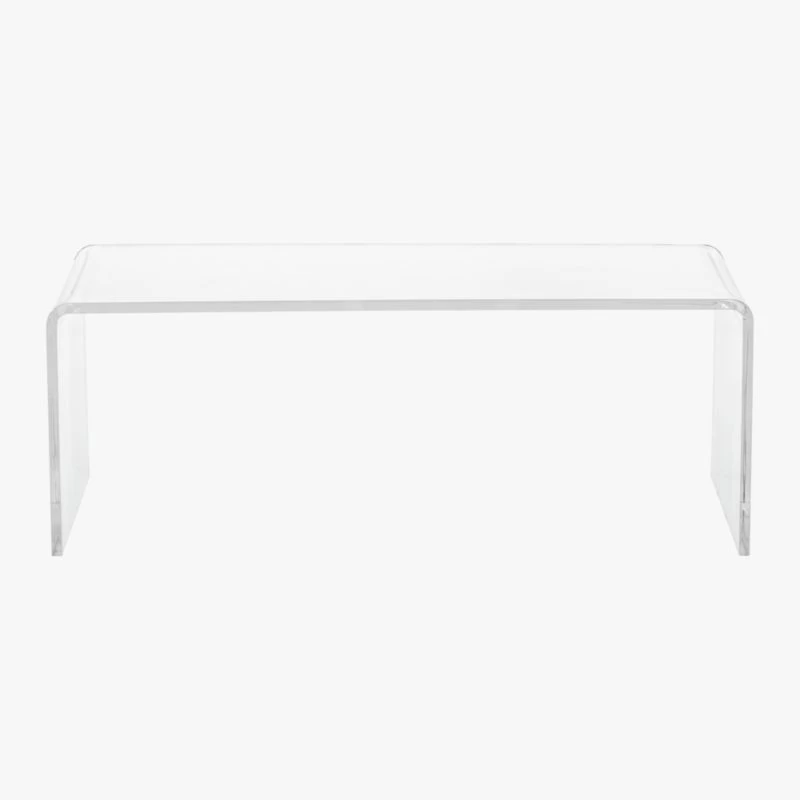 This transparent new surface floats in the room without taking up permanent visual residency. Thick half-inch molded acrylic adds clean mod edge in one seamless turn. Priced to disappear quickly, too.