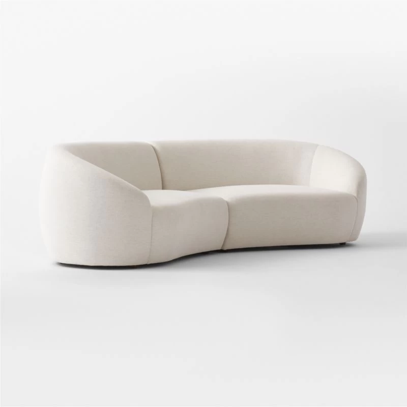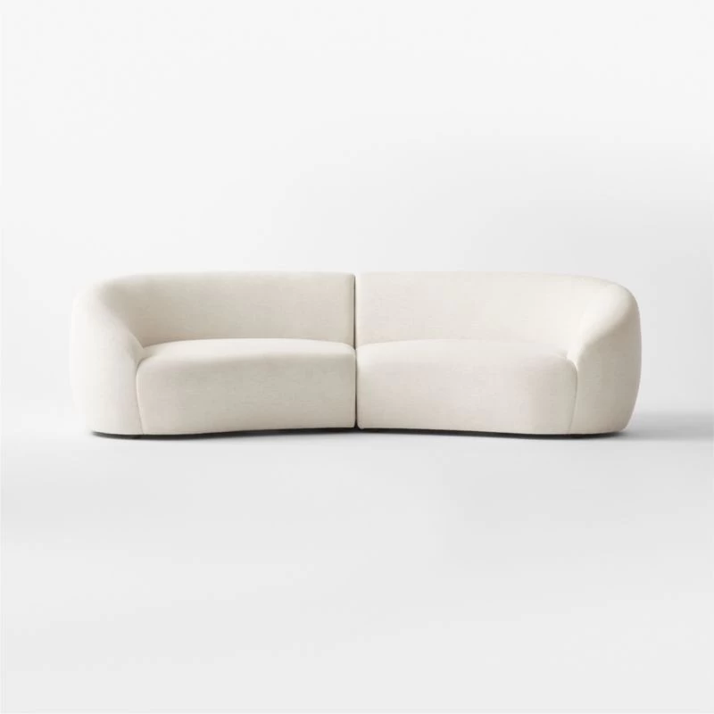 Snow white curves in all the right places. Two-piece sectional designed by Ross Cassidy is minimalistic in its shape with a soft upholstery that reminds us of a luxe chenille. Special design detail: It’s framed out using a eucalyptus wood blend certified sustainable by the Forest Stewardship Council ®. CB2 exclusive.