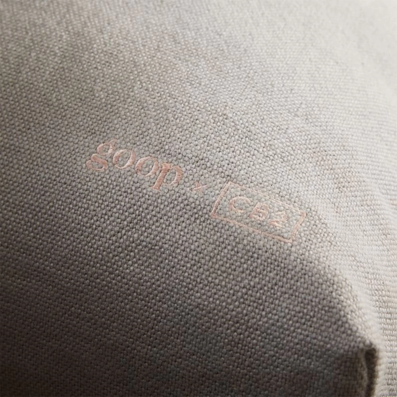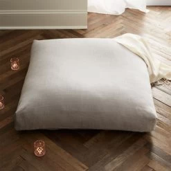 Oversize relax/chill/meditation pillow by goop features luxe linen cover and small handle for easy carrying. The large floor cushion is modeled after the Japanese “zabuton,” traditionally used in zen meditation practice. CB2 exclusive.