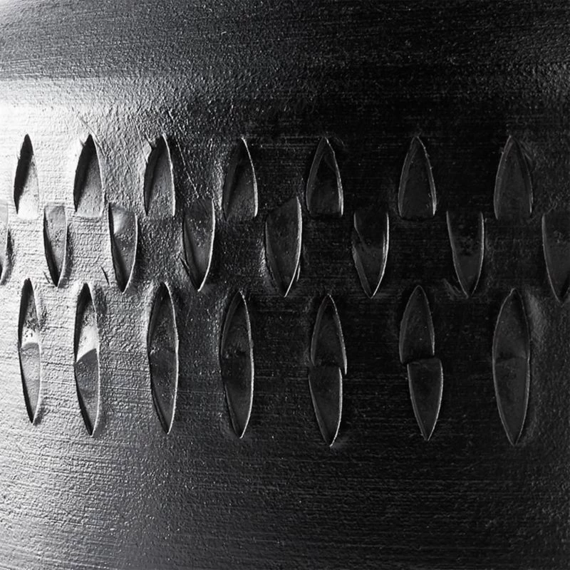 Called Chulucanas, this unique Peruvian pottery has been hand-thrown by artists for generations. A primitive local craft that dates back to pre-Incan times and gets its name from the town where it’s always been made. The pottery follows an elaborate process and is tended to by several artisans. Some pound the clay to the correct consistency. Others hand-turn it on a wheel creating the vessel. Kiln specialists fire, then fire again utilizing burnt mango leaves to give the piece its signature blackened finish and unique texture. It’s ancient artistry for the modern home.