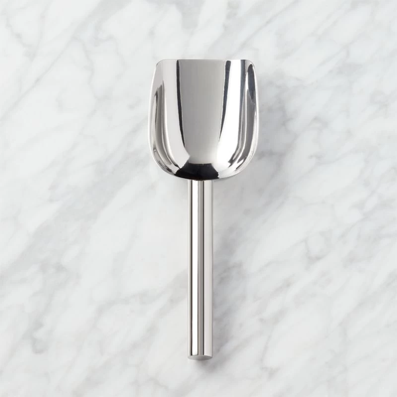 Classic scoop is made of durable stainless steel with a protective lacquer coating. CB2 exclusive.