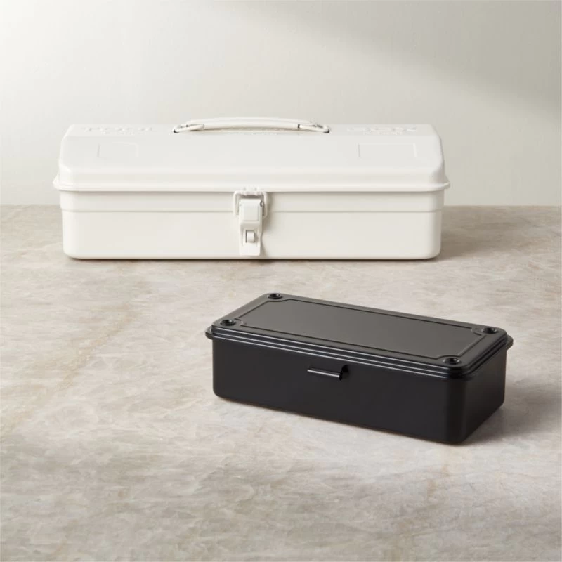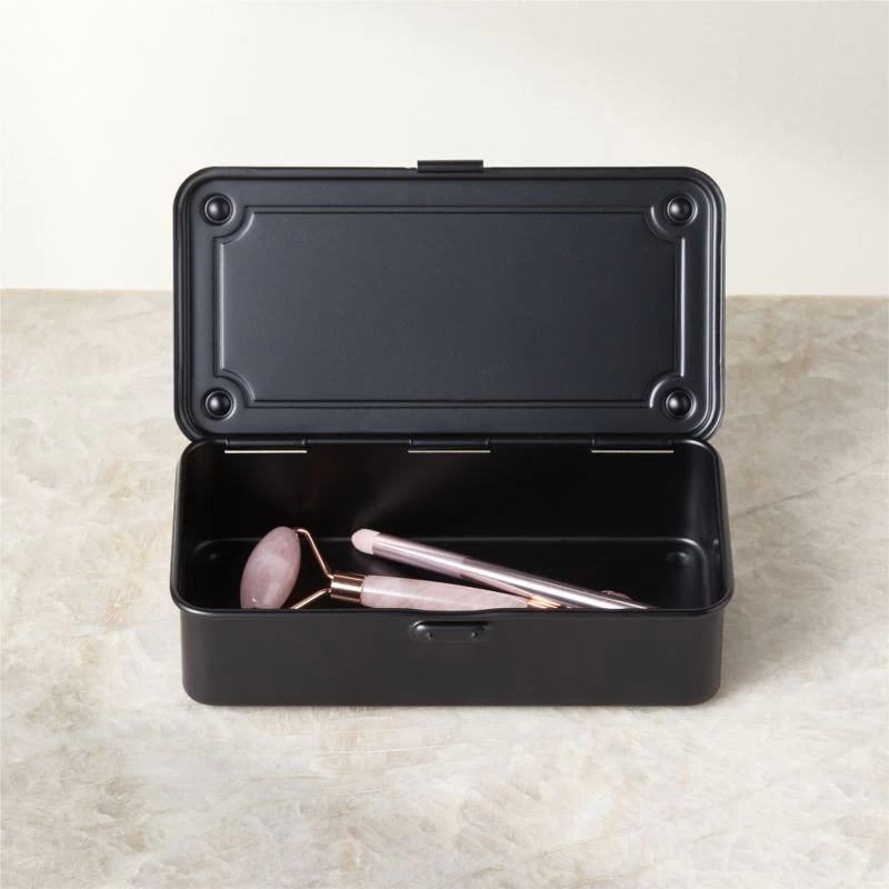Crafted in Japan, steel storage box stashes trinkets in style. Toyo’s unique stamping process creates smooth, rounded edges from a single sheet of steel, offering a sturdy yet lightweight structure. Complete with a lid for easy stacking, black storage box is perfect for art supplies, makeup, nail polish and more.