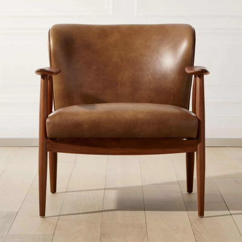 Not your dad’s rec room chair: midcentury modern design manages to be both structured and comfy all at once. Designed by James Patterson, chair is upholstered in buttery saddle leather that will age and soften beautifully over time. Learn more about James Patterson on our blog. CB2 exclusive.